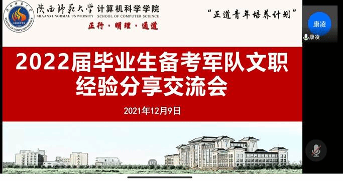 党委副书记郭康凌老师,2022届本科、硕士毕业生,以及部分有意向报考军队文职的研一、研二同学参加会议。会议由研究生兼职辅导员任仰主持。
