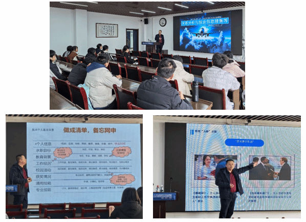 蔡鹏以《职业方向探索和信息收集》和《简历撰写技巧》为主题,从求职分析与优势识别着手,通过专业的职业评估工具和详实的行业案例,指导学生开展深入的自我认知与精准的职业定位。他强调,在日益激烈的就业竞争中,学生需要准确把握自身的核心竞争力,实现个人特质与职业要求的最佳匹配。在职业方向探索环节,蔡鹏引入职业锚理论、决策平衡单等专业工具,系统讲解了在多元化职业发展路径中做出最优选择的方法论,帮助学生建立动态的职业评估机制。围绕信息化时代就业特点,他系统讲解了高效获取与管理就业信息的方法,包括信息筛选、鉴别与分类,并指导建立个人就业信息库。针对简历撰写,蔡鹏通过案例对比,强调以数据化、成果化和逻辑化方式呈现个人价值,并在实践环节指导学员优化简历,促进知识向技能转化。