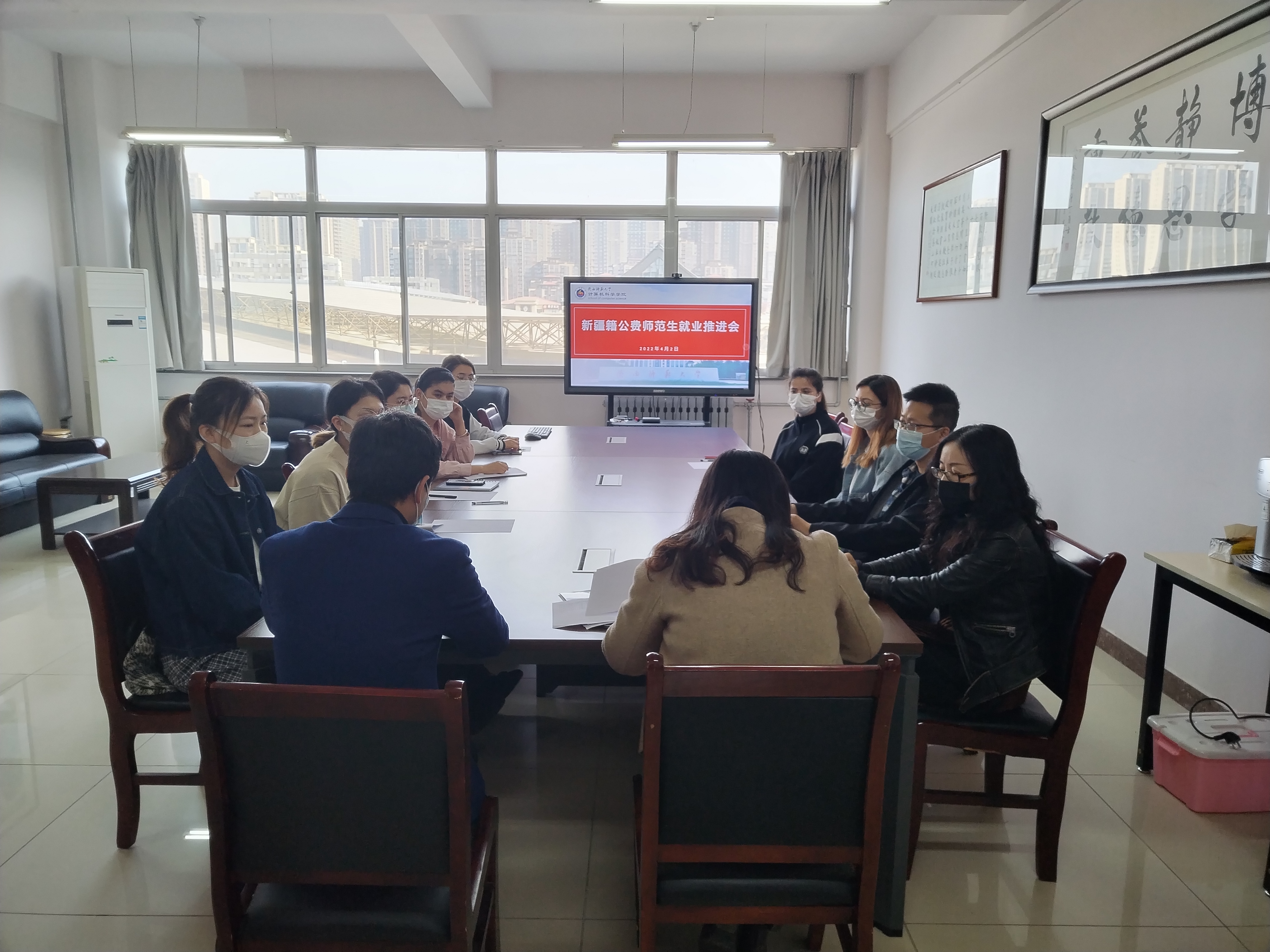 党委副书记郭康凌老师、计算机科学与技术专业班主任邵仲世老师、教师普适计算党支部组织委员张玉梅教授、7名新疆籍公费师范生参加会议,会议由毕业班辅导员田海东主持。