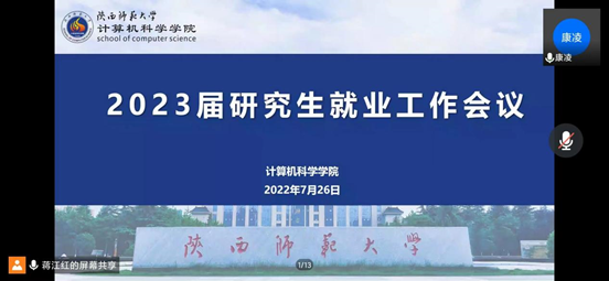 召开2023届研究生就业工作线上会议。副院长马苗、研究生辅导员蒋江红、申雨梦及全体2023届研究生参会。会议由党委副书记郭康凌主持。