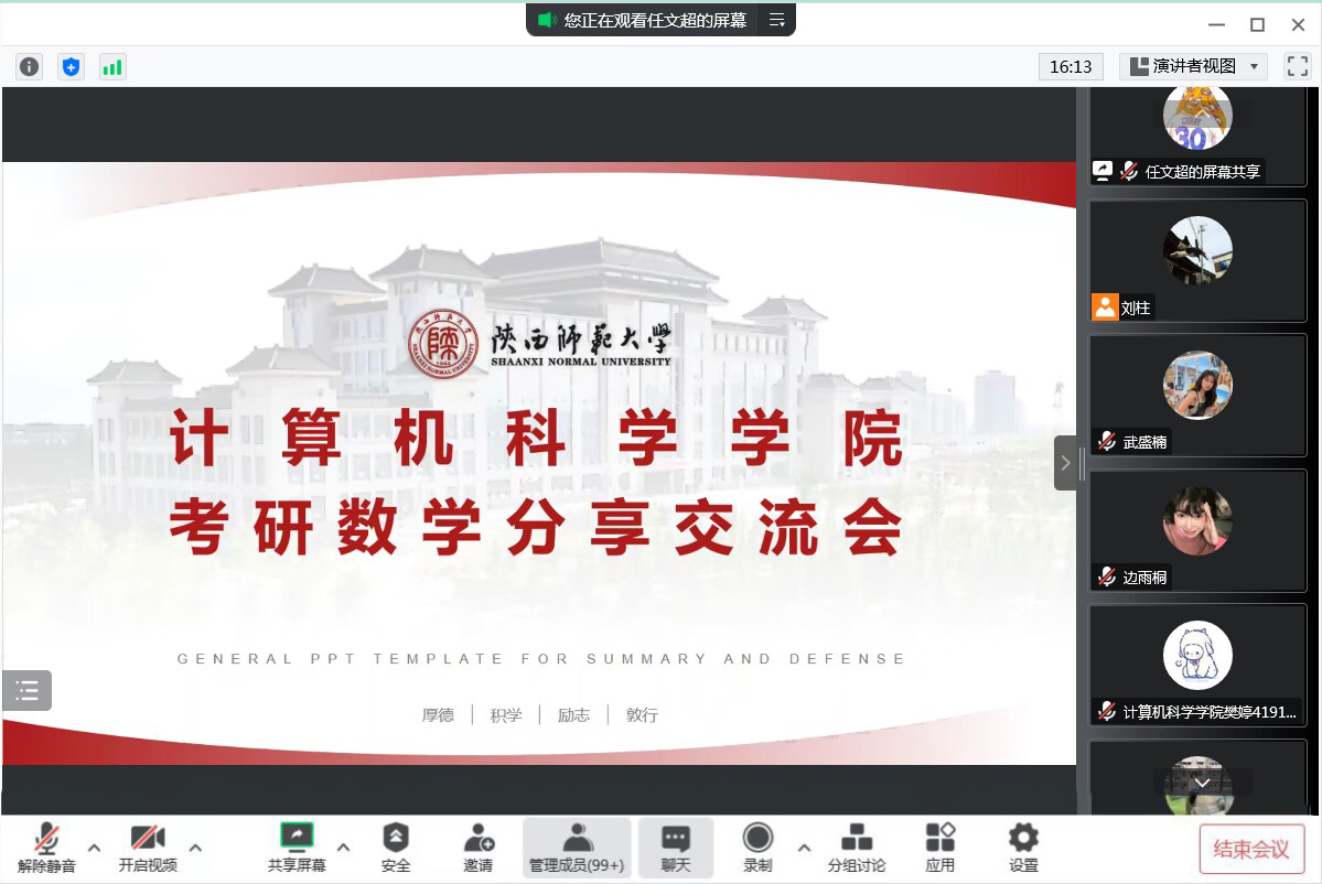 通过线上会议的方式组织召开考研数学分享交流会。邀请财神捕鱼