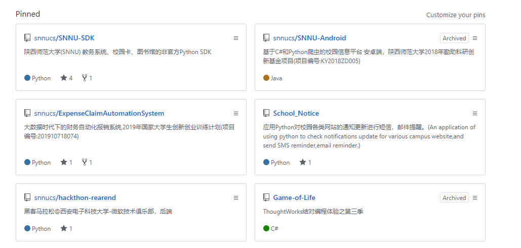图 2 大学时期的Github开源项目