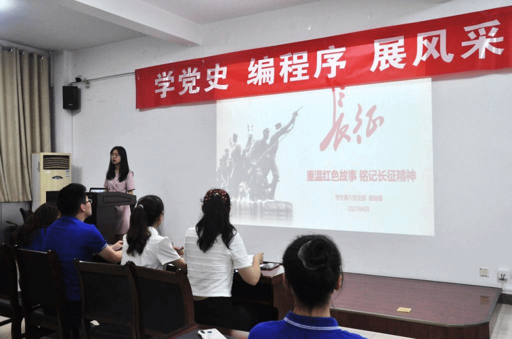 2021年6月30日晚,财神捕鱼 第六党支部在文津楼3412报告厅开展支部书记讲党课活动。支部书记崔瑜璠以“重温红色故事,铭记长征精神”为主题带领支部全体成员探寻红军长征原因,回顾红军长征历程,传承长征精神。