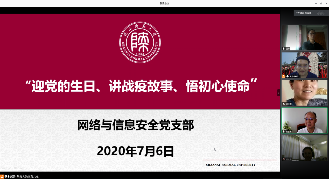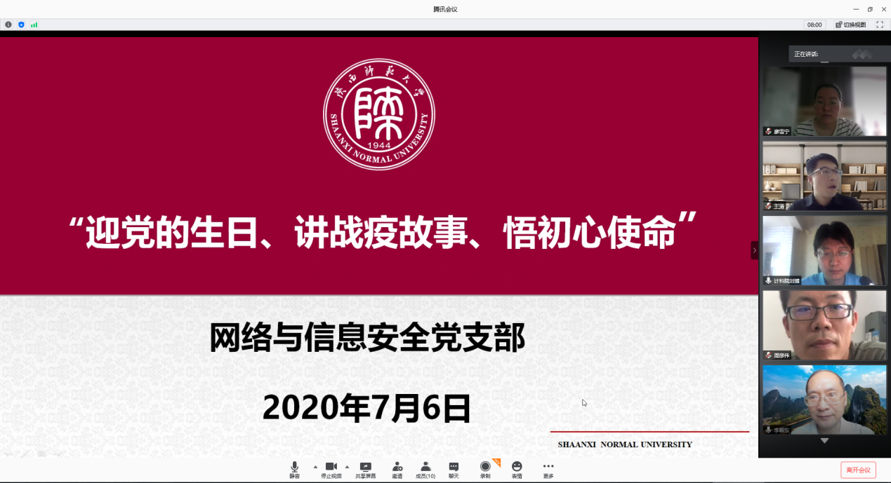 2020年7月6日下午,网络与信息安全党支部通过腾讯会议在线平台开展了“迎党的生日、讲战疫故事、悟初心使命”组织生活会,支部10名党员全部参加了此次活动。组织生活会由党支部书记禹勇老师主持。